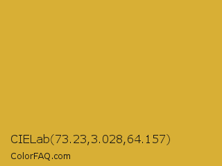 CIELab 73.23,3.028,64.157 Color is a normal orange color and the nearest color is Gold Metallic #d4af37. Hex code #d8af35 and RGB value is rgb(216,175,53). In RGB color space, this color is composed of 85% red, 69% green, 21% blue, In CMYK color space, this color is composed of 0% cyan, 19% magenta, 75% yellow , 15% black , In HSL color space, this color has a hue angle of 45° , 68% saturation and 53% lightness.