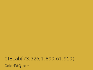 CIELab 73.326,1.899,61.919 Color is a normal orange color and the nearest color is Gold Metallic #d4af37. Hex code #d6b03b and RGB value is rgb(214,176,59). In RGB color space, this color is composed of 84% red, 69% green, 23% blue, In CMYK color space, this color is composed of 0% cyan, 18% magenta, 72% yellow , 16% black , In HSL color space, this color has a hue angle of 45° , 65% saturation and 54% lightness.