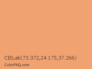 CIELab 73.372,24.175,37.266 Color is a light orange color and the nearest color is Fawn #e5aa70. Hex code #f1a271 and RGB value is rgb(241,162,113). In RGB color space, this color is composed of 95% red, 64% green, 44% blue, In CMYK color space, this color is composed of 0% cyan, 33% magenta, 53% yellow , 5% black , In HSL color space, this color has a hue angle of 23° , 82% saturation and 69% lightness.