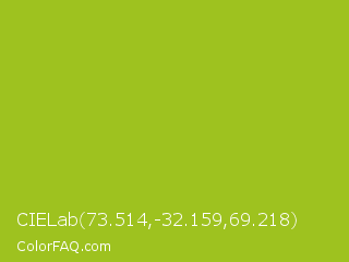 CIELab 73.514,-32.159,69.218 Color is a normal lime color and the nearest color is Acid Green #b0bf1a. Hex code #9ec21f and RGB value is rgb(158,194,31). In RGB color space, this color is composed of 62% red, 76% green, 12% blue, In CMYK color space, this color is composed of 19% cyan, 0% magenta, 84% yellow , 24% black , In HSL color space, this color has a hue angle of 73° , 72% saturation and 44% lightness.