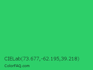 CIELab 73.677,-62.195,39.218 Color is a normal green color and the nearest color is UFO Green #3cd070. Hex code #2dcf69 and RGB value is rgb(45,207,105). In RGB color space, this color is composed of 18% red, 81% green, 41% blue, In CMYK color space, this color is composed of 78% cyan, 0% magenta, 49% yellow , 19% black , In HSL color space, this color has a hue angle of 142° , 64% saturation and 49% lightness.