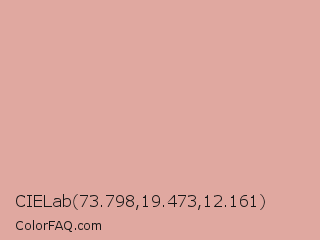 CIELab 73.798,19.473,12.161 Color is a light red color and the nearest color is Pastel Pink #dea5a4. Hex code #e0a8a0 and RGB value is rgb(224,168,160). In RGB color space, this color is composed of 88% red, 66% green, 63% blue, In CMYK color space, this color is composed of 0% cyan, 25% magenta, 29% yellow , 12% black , In HSL color space, this color has a hue angle of 8° , 51% saturation and 75% lightness.