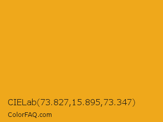 CIELab 73.827,15.895,73.347 Color is a normal orange color and the nearest color is Buttercup #f3ad16. Hex code #efa81b and RGB value is rgb(239,168,27). In RGB color space, this color is composed of 94% red, 66% green, 11% blue, In CMYK color space, this color is composed of 0% cyan, 30% magenta, 89% yellow , 6% black , In HSL color space, this color has a hue angle of 40° , 87% saturation and 52% lightness.