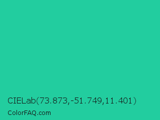 CIELab 73.873,-51.749,11.401 Color is a normal cyan color and the nearest color is Shamrock #33cc99. Hex code #22cd9f and RGB value is rgb(34,205,159). In RGB color space, this color is composed of 13% red, 80% green, 62% blue, In CMYK color space, this color is composed of 83% cyan, 0% magenta, 22% yellow , 20% black , In HSL color space, this color has a hue angle of 164° , 72% saturation and 47% lightness.