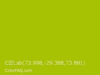 CIELab 73.998,-29.388,73.881 Color is a normal yellow color and the nearest color is Citrus #a1c50a. Hex code #a6c205 and RGB value is rgb(166,194,5). In RGB color space, this color is composed of 65% red, 76% green, 2% blue, In CMYK color space, this color is composed of 14% cyan, 0% magenta, 97% yellow , 24% black , In HSL color space, this color has a hue angle of 69° , 95% saturation and 39% lightness.