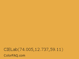 CIELab 74.005,12.737,59.11 Color is a normal orange color and the nearest color is Tulip Tree #eab33b. Hex code #e8ab45 and RGB value is rgb(232,171,69). In RGB color space, this color is composed of 91% red, 67% green, 27% blue, In CMYK color space, this color is composed of 0% cyan, 26% magenta, 70% yellow , 9% black , In HSL color space, this color has a hue angle of 38° , 78% saturation and 59% lightness.