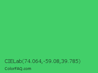 CIELab 74.064,-59.08,39.785 Color is a normal green color and the nearest color is UFO Green #3cd070. Hex code #42cf69 and RGB value is rgb(66,207,105). In RGB color space, this color is composed of 26% red, 81% green, 41% blue, In CMYK color space, this color is composed of 68% cyan, 0% magenta, 49% yellow , 19% black , In HSL color space, this color has a hue angle of 137° , 59% saturation and 54% lightness.