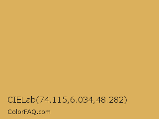 CIELab 74.115,6.034,48.282 Color is a light orange color and the nearest color is Earth Yellow #e1a95f. Hex code #dbb05c and RGB value is rgb(219,176,92). In RGB color space, this color is composed of 86% red, 69% green, 36% blue, In CMYK color space, this color is composed of 0% cyan, 20% magenta, 58% yellow , 14% black , In HSL color space, this color has a hue angle of 40° , 64% saturation and 61% lightness.