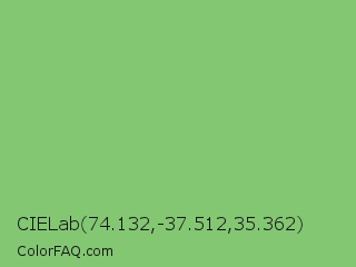 CIELab 74.132,-37.512,35.362 Color is a light green color and the nearest color is Pistachio #93c572. Hex code #83c773 and RGB value is rgb(131,199,115). In RGB color space, this color is composed of 51% red, 78% green, 45% blue, In CMYK color space, this color is composed of 34% cyan, 0% magenta, 42% yellow , 22% black , In HSL color space, this color has a hue angle of 109° , 43% saturation and 62% lightness.