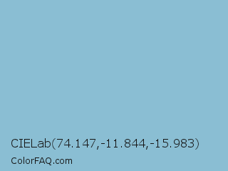 CIELab 74.147,-11.844,-15.983 Color is a light blue color and the nearest color is Dark Sky Blue #8cbed6. Hex code #8abed3 and RGB value is rgb(138,190,211). In RGB color space, this color is composed of 54% red, 75% green, 83% blue, In CMYK color space, this color is composed of 35% cyan, 10% magenta, 0% yellow , 17% black , In HSL color space, this color has a hue angle of 197° , 45% saturation and 68% lightness.
