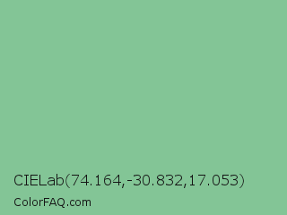 CIELab 74.164,-30.832,17.053 Color is a light green color and the nearest color is Dark Sea Green #8fbc8f. Hex code #83c596 and RGB value is rgb(131,197,150). In RGB color space, this color is composed of 51% red, 77% green, 59% blue, In CMYK color space, this color is composed of 34% cyan, 0% magenta, 24% yellow , 23% black , In HSL color space, this color has a hue angle of 137° , 36% saturation and 64% lightness.