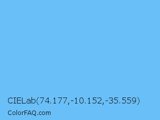 CIELab 74.177,-10.152,-35.559 Color is a light blue color and the nearest color is Maya Blue #73c2fb. Hex code #69bff7 and RGB value is rgb(105,191,247). In RGB color space, this color is composed of 41% red, 75% green, 97% blue, In CMYK color space, this color is composed of 57% cyan, 23% magenta, 0% yellow , 3% black , In HSL color space, this color has a hue angle of 204° , 90% saturation and 69% lightness.
