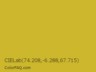 CIELab 74.208,-6.288,67.715 Color is a normal yellow color and the nearest color is Old Gold #cfb53b. Hex code #cdb72c and RGB value is rgb(205,183,44). In RGB color space, this color is composed of 80% red, 72% green, 17% blue, In CMYK color space, this color is composed of 0% cyan, 11% magenta, 79% yellow , 20% black , In HSL color space, this color has a hue angle of 52° , 65% saturation and 49% lightness.