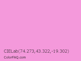 CIELab 74.273,43.322,-19.302 Color is a light magenta color and the nearest color is Lavender Rose #fba0e3. Hex code #f499db and RGB value is rgb(244,153,219). In RGB color space, this color is composed of 96% red, 60% green, 86% blue, In CMYK color space, this color is composed of 0% cyan, 37% magenta, 10% yellow , 4% black , In HSL color space, this color has a hue angle of 316° , 81% saturation and 78% lightness.