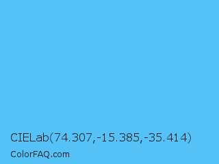 CIELab 74.307,-15.385,-35.414 Color is a light blue color and the nearest color is Blue Jeans #5dadec. Hex code #54c2f7 and RGB value is rgb(84,194,247). In RGB color space, this color is composed of 33% red, 76% green, 97% blue, In CMYK color space, this color is composed of 66% cyan, 21% magenta, 0% yellow , 3% black , In HSL color space, this color has a hue angle of 200° , 91% saturation and 65% lightness.
