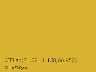 CIELab 74.321,1.158,66.952 Color is a normal yellow color and the nearest color is Gold Metallic #d4af37. Hex code #d9b330 and RGB value is rgb(217,179,48). In RGB color space, this color is composed of 85% red, 70% green, 19% blue, In CMYK color space, this color is composed of 0% cyan, 18% magenta, 78% yellow , 15% black , In HSL color space, this color has a hue angle of 47° , 69% saturation and 52% lightness.