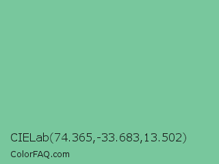 CIELab 74.365,-33.683,13.502 Color is a light green color and the nearest color is De York #7ac488. Hex code #78c79d and RGB value is rgb(120,199,157). In RGB color space, this color is composed of 47% red, 78% green, 62% blue, In CMYK color space, this color is composed of 40% cyan, 0% magenta, 21% yellow , 22% black , In HSL color space, this color has a hue angle of 148° , 41% saturation and 63% lightness.