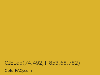 CIELab 74.492,1.853,68.782 Color is a normal yellow color and the nearest color is Urobilin #e1ad21. Hex code #dbb32b and RGB value is rgb(219,179,43). In RGB color space, this color is composed of 86% red, 70% green, 17% blue, In CMYK color space, this color is composed of 0% cyan, 18% magenta, 80% yellow , 14% black , In HSL color space, this color has a hue angle of 46° , 71% saturation and 51% lightness.