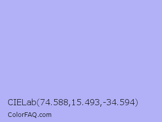 CIELab 74.588,15.493,-34.594 Color is a very light indigo color and the nearest color is Perano #a9bef2. Hex code #b2b1f7 and RGB value is rgb(178,177,247). In RGB color space, this color is composed of 70% red, 69% green, 97% blue, In CMYK color space, this color is composed of 28% cyan, 28% magenta, 0% yellow , 3% black , In HSL color space, this color has a hue angle of 241° , 81% saturation and 83% lightness.