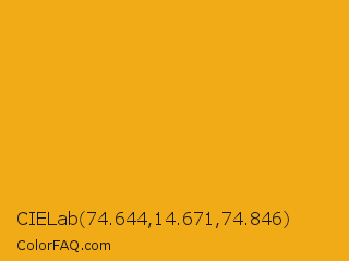 CIELab 74.644,14.671,74.846 Color is a normal orange color and the nearest color is Buttercup #f3ad16. Hex code #f0ab17 and RGB value is rgb(240,171,23). In RGB color space, this color is composed of 94% red, 67% green, 9% blue, In CMYK color space, this color is composed of 0% cyan, 29% magenta, 90% yellow , 6% black , In HSL color space, this color has a hue angle of 41° , 88% saturation and 52% lightness.