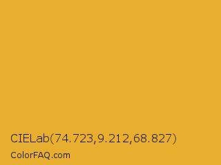 CIELab 74.723,9.212,68.827 Color is a normal orange color and the nearest color is Fuel Yellow #eca927. Hex code #e7af2d and RGB value is rgb(231,175,45). In RGB color space, this color is composed of 91% red, 69% green, 18% blue, In CMYK color space, this color is composed of 0% cyan, 24% magenta, 81% yellow , 9% black , In HSL color space, this color has a hue angle of 42° , 79% saturation and 54% lightness.