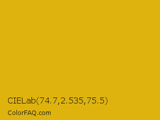 CIELab 74.7,2.535,75.5 Color is a normal yellow color and the nearest color is Galliano #dcb20c. Hex code #deb30e and RGB value is rgb(222,179,14). In RGB color space, this color is composed of 87% red, 70% green, 5% blue, In CMYK color space, this color is composed of 0% cyan, 19% magenta, 94% yellow , 13% black , In HSL color space, this color has a hue angle of 48° , 88% saturation and 46% lightness.