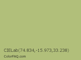 CIELab 74.834,-15.973,33.238 Color is a light lime color and the nearest color is Misty Moss #bbb477. Hex code #b1bf7a and RGB value is rgb(177,191,122). In RGB color space, this color is composed of 69% red, 75% green, 48% blue, In CMYK color space, this color is composed of 7% cyan, 0% magenta, 36% yellow , 25% black , In HSL color space, this color has a hue angle of 72° , 35% saturation and 61% lightness.