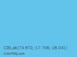 CIELab 74.872,-17.708,-28.041 Color is a light blue color and the nearest color is Viking #64ccdb. Hex code #62c4eb and RGB value is rgb(98,196,235). In RGB color space, this color is composed of 38% red, 77% green, 92% blue, In CMYK color space, this color is composed of 58% cyan, 17% magenta, 0% yellow , 8% black , In HSL color space, this color has a hue angle of 197° , 77% saturation and 65% lightness.