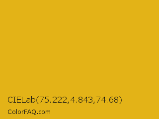 CIELab 75.222,4.843,74.68 Color is a normal yellow color and the nearest color is Gold Tips #deba13. Hex code #e3b317 and RGB value is rgb(227,179,23). In RGB color space, this color is composed of 89% red, 70% green, 9% blue, In CMYK color space, this color is composed of 0% cyan, 21% magenta, 90% yellow , 11% black , In HSL color space, this color has a hue angle of 46° , 82% saturation and 49% lightness.