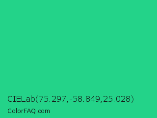 CIELab 75.297,-58.849,25.028 Color is a normal green color and the nearest color is Shamrock #33cc99. Hex code #23d389 and RGB value is rgb(35,211,137). In RGB color space, this color is composed of 14% red, 83% green, 54% blue, In CMYK color space, this color is composed of 83% cyan, 0% magenta, 35% yellow , 17% black , In HSL color space, this color has a hue angle of 155° , 72% saturation and 48% lightness.