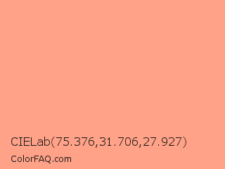 CIELab 75.376,31.706,27.927 Color is a light red color and the nearest color is Vivid Tangerine #ffa089. Hex code #ffa288 and RGB value is rgb(255,162,136). In RGB color space, this color is composed of 100% red, 64% green, 53% blue, In CMYK color space, this color is composed of 0% cyan, 36% magenta, 47% yellow , 0% black , In HSL color space, this color has a hue angle of 13° , 100% saturation and 77% lightness.