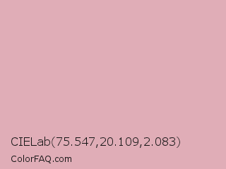 CIELab 75.547,20.109,2.083 Color is a light red color and the nearest color is Pale Chestnut #ddadaf. Hex code #e0adb7 and RGB value is rgb(224,173,183). In RGB color space, this color is composed of 88% red, 68% green, 72% blue, In CMYK color space, this color is composed of 0% cyan, 23% magenta, 18% yellow , 12% black , In HSL color space, this color has a hue angle of 348° , 45% saturation and 78% lightness.