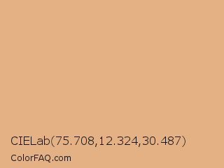 CIELab 75.708,12.324,30.487 Color is a light orange color and the nearest color is Burlywood #deb887. Hex code #e3b183 and RGB value is rgb(227,177,131). In RGB color space, this color is composed of 89% red, 69% green, 51% blue, In CMYK color space, this color is composed of 0% cyan, 22% magenta, 42% yellow , 11% black , In HSL color space, this color has a hue angle of 29° , 63% saturation and 70% lightness.