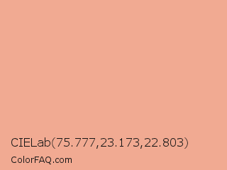 CIELab 75.777,23.173,22.803 Color is a light color and the nearest color is Tonys Pink #e79f8c. Hex code #f1aa92 and RGB value is rgb(241,170,146). In RGB color space, this color is composed of 95% red, 67% green, 57% blue, In CMYK color space, this color is composed of 0% cyan, 29% magenta, 39% yellow , 5% black , In HSL color space, this color has a hue angle of 15° , 77% saturation and 76% lightness.