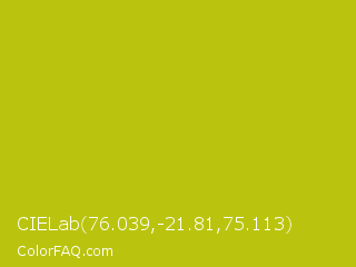 CIELab 76.039,-21.81,75.113 Color is a normal yellow color and the nearest color is La Rioja #b3c110. Hex code #bac40e and RGB value is rgb(186,196,14). In RGB color space, this color is composed of 73% red, 77% green, 5% blue, In CMYK color space, this color is composed of 5% cyan, 0% magenta, 93% yellow , 23% black , In HSL color space, this color has a hue angle of 63° , 87% saturation and 41% lightness.