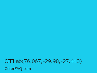CIELab 76.067,-29.98,-27.413 Color is a normal cyan color and the nearest color is Spiro Disco Ball #0fc0fc. Hex code #1acded and RGB value is rgb(26,205,237). In RGB color space, this color is composed of 10% red, 80% green, 93% blue, In CMYK color space, this color is composed of 89% cyan, 14% magenta, 0% yellow , 7% black , In HSL color space, this color has a hue angle of 189° , 85% saturation and 52% lightness.