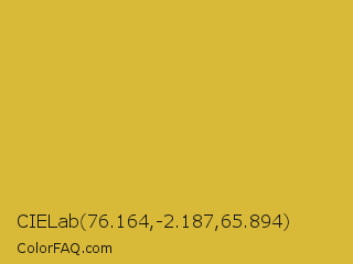 CIELab 76.164,-2.187,65.894 Color is a normal yellow color and the nearest color is Old Gold #cfb53b. Hex code #d9ba38 and RGB value is rgb(217,186,56). In RGB color space, this color is composed of 85% red, 73% green, 22% blue, In CMYK color space, this color is composed of 0% cyan, 14% magenta, 74% yellow , 15% black , In HSL color space, this color has a hue angle of 48° , 68% saturation and 54% lightness.