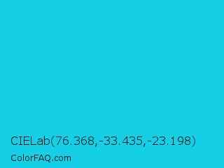 CIELab 76.368,-33.435,-23.198 Color is a normal cyan color and the nearest color is Spiro Disco Ball #0fc0fc. Hex code #14cfe6 and RGB value is rgb(20,207,230). In RGB color space, this color is composed of 8% red, 81% green, 90% blue, In CMYK color space, this color is composed of 91% cyan, 10% magenta, 0% yellow , 10% black , In HSL color space, this color has a hue angle of 187° , 84% saturation and 49% lightness.