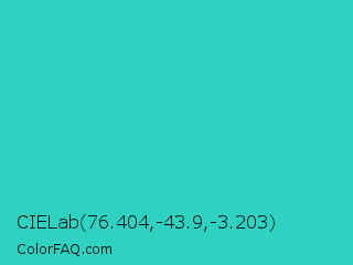 CIELab 76.404,-43.9,-3.203 Color is a normal cyan color and the nearest color is Turquoise PWG #30d5c8. Hex code #2fd2c1 and RGB value is rgb(47,210,193). In RGB color space, this color is composed of 18% red, 82% green, 76% blue, In CMYK color space, this color is composed of 78% cyan, 0% magenta, 8% yellow , 18% black , In HSL color space, this color has a hue angle of 174° , 64% saturation and 50% lightness.