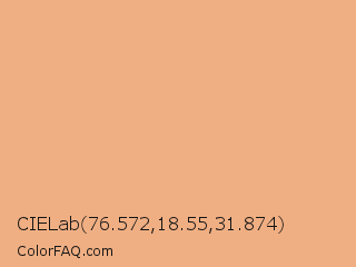 CIELab 76.572,18.55,31.874 Color is a light orange color and the nearest color is Tacao #edb381. Hex code #f0af83 and RGB value is rgb(240,175,131). In RGB color space, this color is composed of 94% red, 69% green, 51% blue, In CMYK color space, this color is composed of 0% cyan, 27% magenta, 45% yellow , 6% black , In HSL color space, this color has a hue angle of 24° , 78% saturation and 73% lightness.