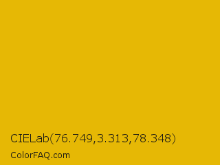CIELab 76.749,3.313,78.348 Color is a normal yellow color and the nearest color is Corn #e7bf05. Hex code #e6b805 and RGB value is rgb(230,184,5). In RGB color space, this color is composed of 90% red, 72% green, 2% blue, In CMYK color space, this color is composed of 0% cyan, 20% magenta, 98% yellow , 10% black , In HSL color space, this color has a hue angle of 48° , 96% saturation and 46% lightness.