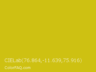 CIELab 76.864,-11.639,75.916 Color is a normal yellow color and the nearest color is Bird Flower #d4cd16. Hex code #cec112 and RGB value is rgb(206,193,18). In RGB color space, this color is composed of 81% red, 76% green, 7% blue, In CMYK color space, this color is composed of 0% cyan, 6% magenta, 91% yellow , 19% black , In HSL color space, this color has a hue angle of 56° , 84% saturation and 44% lightness.