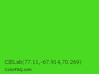 CIELab 77.11,-67.914,70.269 Color is a normal green color and the nearest color is Harlequin Green #46cb18. Hex code #4ada22 and RGB value is rgb(74,218,34). In RGB color space, this color is composed of 29% red, 85% green, 13% blue, In CMYK color space, this color is composed of 66% cyan, 0% magenta, 84% yellow , 15% black , In HSL color space, this color has a hue angle of 107° , 73% saturation and 49% lightness.