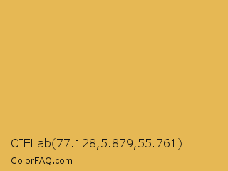 CIELab 77.128,5.879,55.761 Color is a light orange color and the nearest color is Sunray #e3ab57. Hex code #e6b854 and RGB value is rgb(230,184,84). In RGB color space, this color is composed of 90% red, 72% green, 33% blue, In CMYK color space, this color is composed of 0% cyan, 20% magenta, 63% yellow , 10% black , In HSL color space, this color has a hue angle of 41° , 74% saturation and 62% lightness.