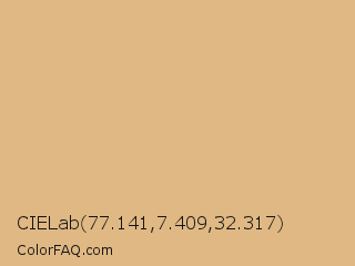CIELab 77.141,7.409,32.317 Color is a light orange color and the nearest color is Burlywood #deb887. Hex code #e0b883 and RGB value is rgb(224,184,131). In RGB color space, this color is composed of 88% red, 72% green, 51% blue, In CMYK color space, this color is composed of 0% cyan, 18% magenta, 42% yellow , 12% black , In HSL color space, this color has a hue angle of 34° , 60% saturation and 70% lightness.