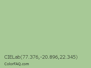 CIELab 77.376,-20.896,22.345 Color is a light green color and the nearest color is Norway #a8bd9f. Hex code #a7c995 and RGB value is rgb(167,201,149). In RGB color space, this color is composed of 65% red, 79% green, 58% blue, In CMYK color space, this color is composed of 17% cyan, 0% magenta, 26% yellow , 21% black , In HSL color space, this color has a hue angle of 99° , 33% saturation and 69% lightness.