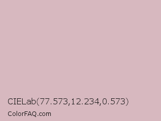 CIELab 77.573,12.234,0.573 Color is a light red color and the nearest color is Blossom #dcb4bc. Hex code #d7b8bf and RGB value is rgb(215,184,191). In RGB color space, this color is composed of 84% red, 72% green, 75% blue, In CMYK color space, this color is composed of 0% cyan, 14% magenta, 11% yellow , 16% black , In HSL color space, this color has a hue angle of 346° , 28% saturation and 78% lightness.