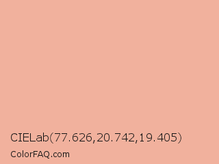 CIELab 77.626,20.742,19.405 Color is a light red color and the nearest color is Rose Bud #fbb2a3. Hex code #f1b19d and RGB value is rgb(241,177,157). In RGB color space, this color is composed of 95% red, 69% green, 62% blue, In CMYK color space, this color is composed of 0% cyan, 27% magenta, 35% yellow , 5% black , In HSL color space, this color has a hue angle of 14° , 75% saturation and 78% lightness.