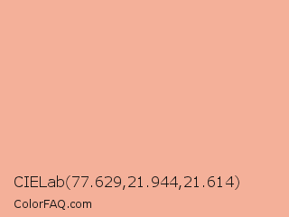 CIELab 77.629,21.944,21.614 Color is a light color and the nearest color is Rose Bud #fbb2a3. Hex code #f4b099 and RGB value is rgb(244,176,153). In RGB color space, this color is composed of 96% red, 69% green, 60% blue, In CMYK color space, this color is composed of 0% cyan, 28% magenta, 37% yellow , 4% black , In HSL color space, this color has a hue angle of 15° , 81% saturation and 78% lightness.