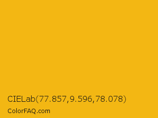 CIELab 77.857,9.596,78.078 Color is a normal orange color and the nearest color is Buttercup #f3ad16. Hex code #f3b713 and RGB value is rgb(243,183,19). In RGB color space, this color is composed of 95% red, 72% green, 7% blue, In CMYK color space, this color is composed of 0% cyan, 25% magenta, 92% yellow , 5% black , In HSL color space, this color has a hue angle of 44° , 90% saturation and 51% lightness.